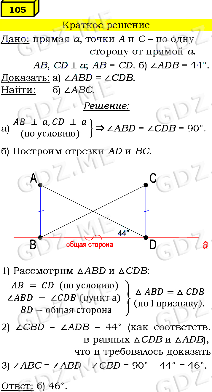 Подробный вариант решения из решебника (ГДЗ): Номер номер 105 (НОМЕРА РЕШЕНИЙ) по предмету Геометрия, за 7 класс, авторы учебника Л.С. Атанасян, В. Ф. Бутузов, С. Б. Кадомцев.