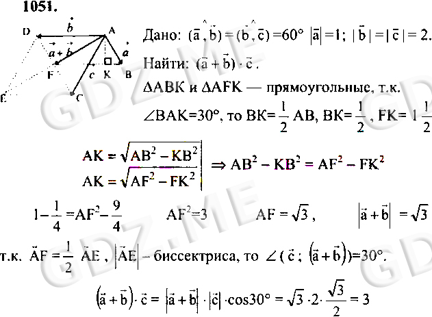 ГДЗ по Геометрии 7-9 класс: Атанасян Л.С. 2013 год.. Ответ на Номер номер 1051 (НОМЕРА РЕШЕНИЙ)