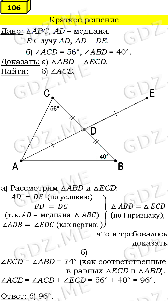ГДЗ по Геометрии 7-9 класс: Атанасян Л.С. 2013 год.. Ответ на Номер номер 106 (НОМЕРА РЕШЕНИЙ)