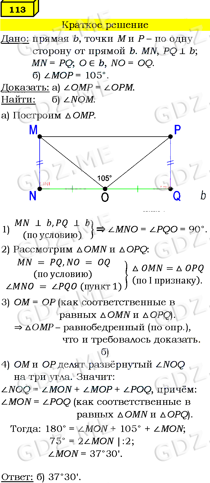 Подробный вариант решения из решебника (ГДЗ): Номер номер 113 (НОМЕРА РЕШЕНИЙ) по предмету Геометрия, за 7 класс, авторы учебника Л.С. Атанасян, В. Ф. Бутузов, С. Б. Кадомцев.