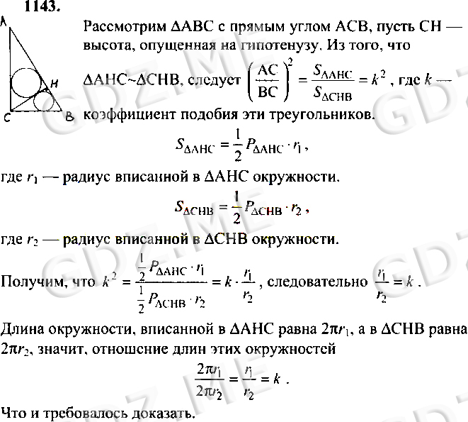 ГДЗ по Геометрии 7-9 класс: Атанасян Л.С. 2013 год.. Ответ на Номер номер 1143 (НОМЕРА РЕШЕНИЙ)