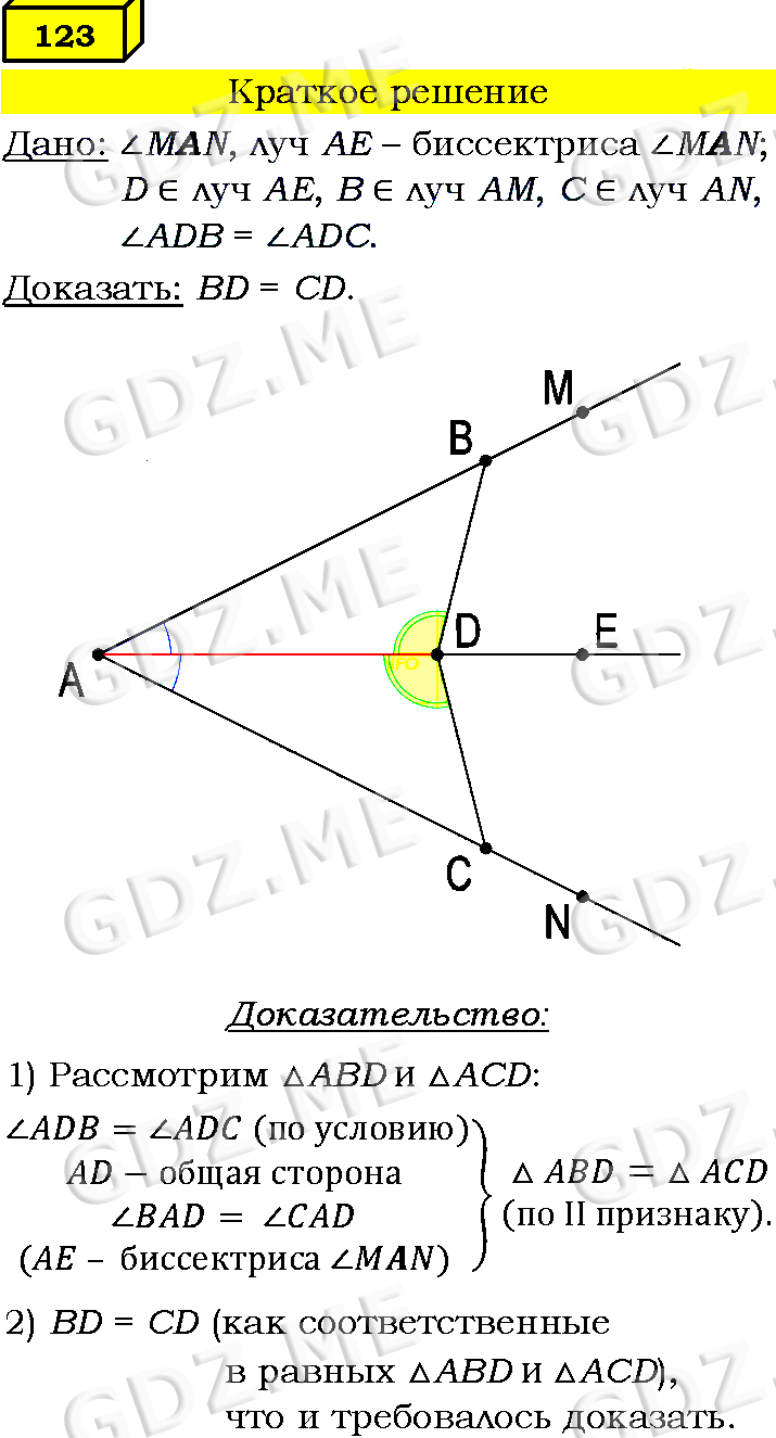 Подробный вариант решения из решебника (ГДЗ): Номер номер 123 (НОМЕРА РЕШЕНИЙ) по предмету Геометрия, за 7 класс, авторы учебника Л.С. Атанасян, В. Ф. Бутузов, С. Б. Кадомцев.