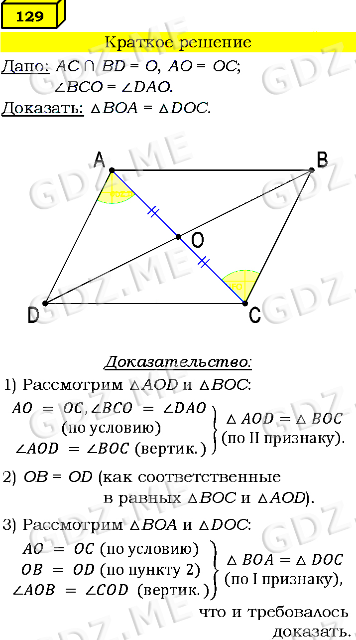 Подробный вариант решения из решебника (ГДЗ): Номер номер 129 (НОМЕРА РЕШЕНИЙ) по предмету Геометрия, за 7 класс, авторы учебника Л.С. Атанасян, В. Ф. Бутузов, С. Б. Кадомцев.