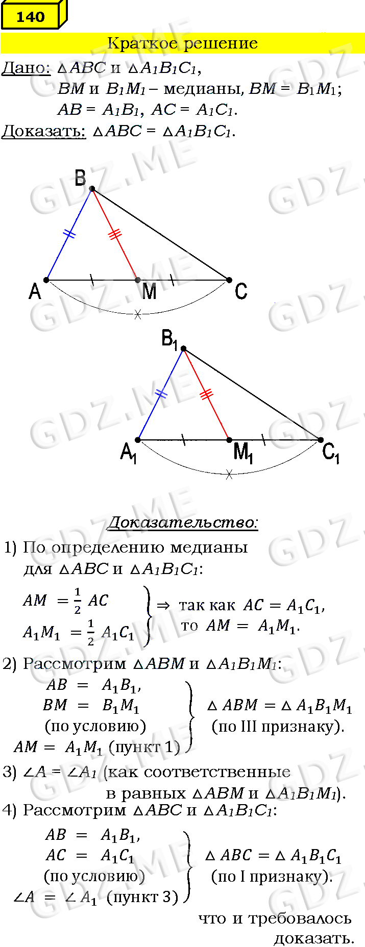 Подробный вариант решения из решебника (ГДЗ): Номер номер 140 (НОМЕРА РЕШЕНИЙ) по предмету Геометрия, за 7 класс, авторы учебника Л.С. Атанасян, В. Ф. Бутузов, С. Б. Кадомцев.
