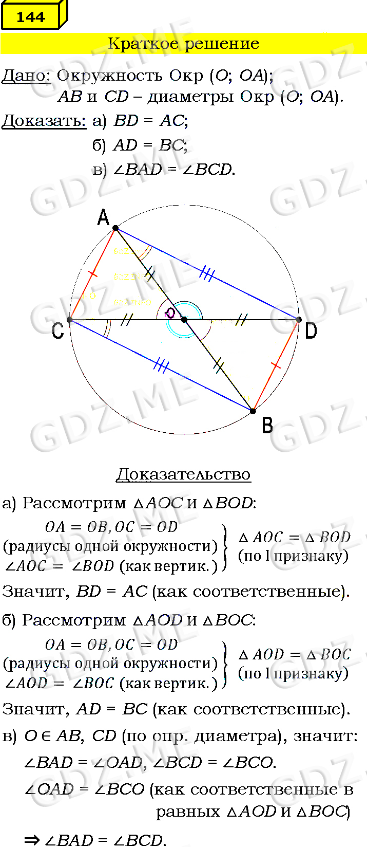 ГДЗ по Геометрии 7-9 класс: Атанасян Л.С. 2013 год.. Ответ на Номер номер 144 (НОМЕРА РЕШЕНИЙ)