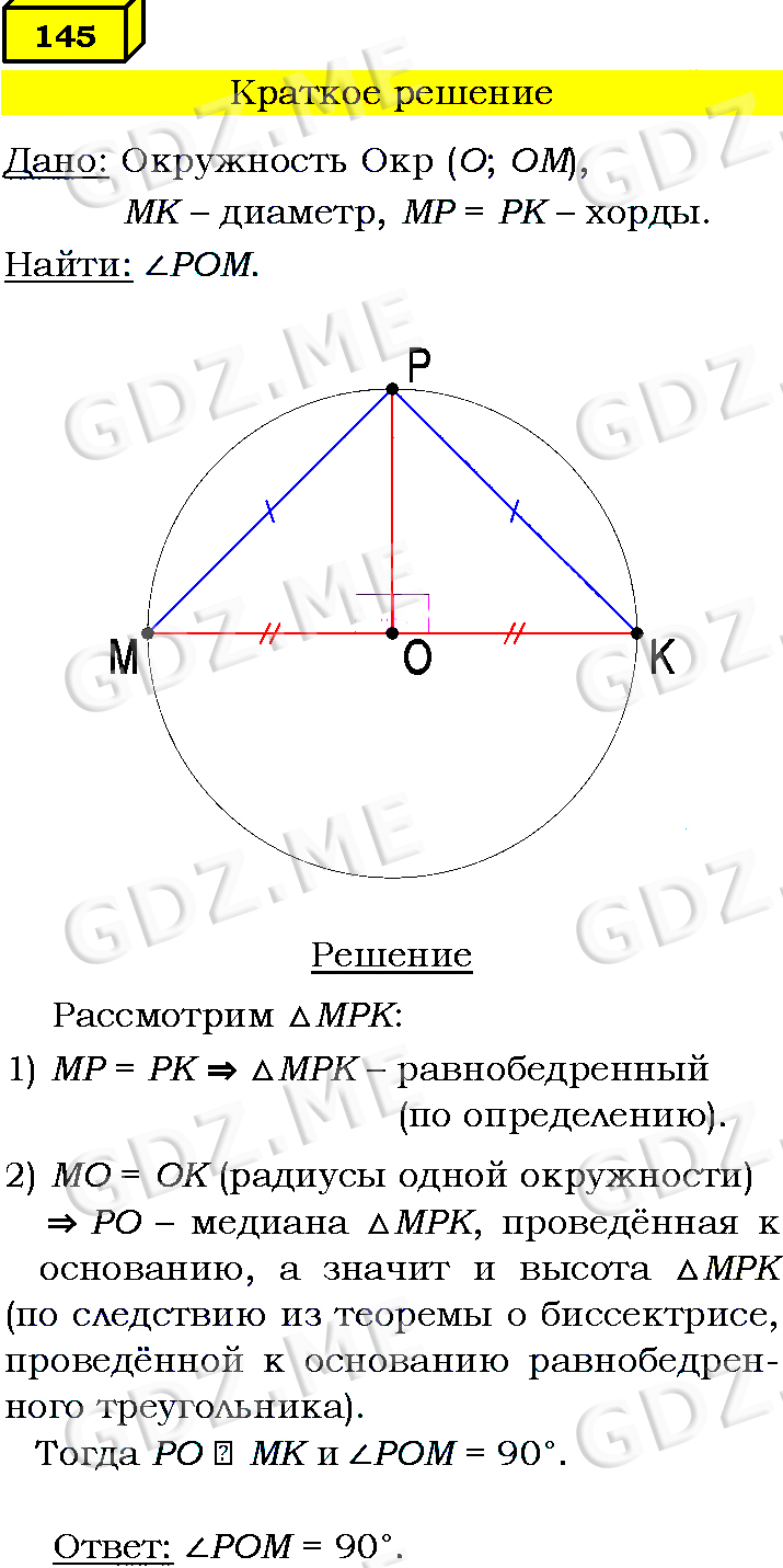 ГДЗ по Геометрии 7-9 класс: Атанасян Л.С. 2013 год.. Ответ на Номер номер 145 (НОМЕРА РЕШЕНИЙ)