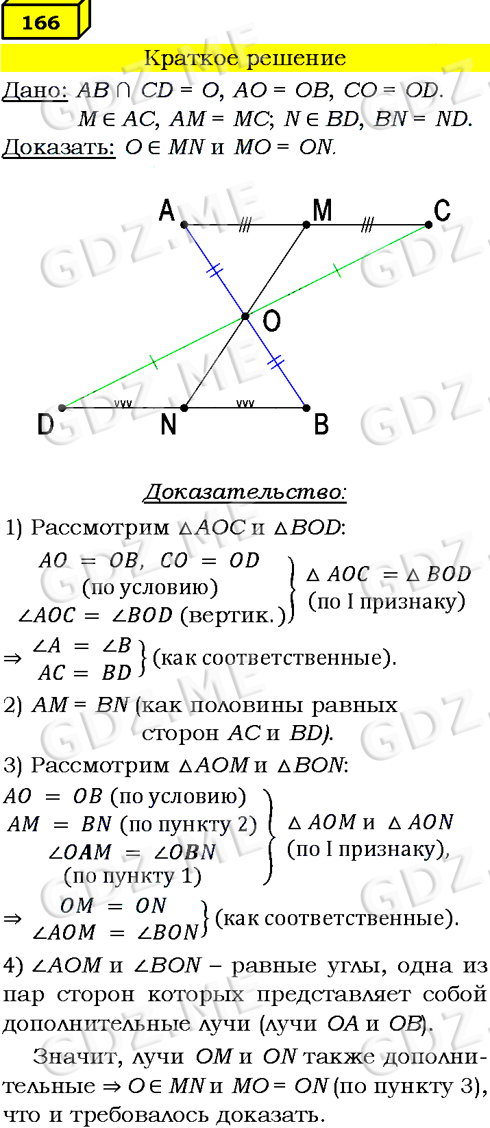 ГДЗ по Геометрии 7-9 класс: Атанасян Л.С. 2013 год.. Ответ на Номер номер 166 (НОМЕРА РЕШЕНИЙ)