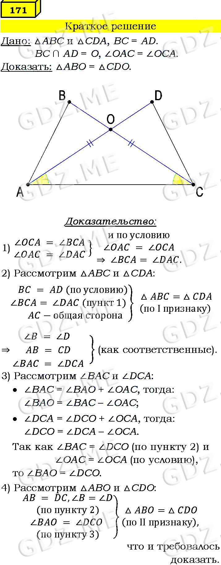 Подробный вариант решения из решебника (ГДЗ): Номер номер 171 (НОМЕРА РЕШЕНИЙ) по предмету Геометрия, за 7 класс, авторы учебника Л.С. Атанасян, В. Ф. Бутузов, С. Б. Кадомцев.