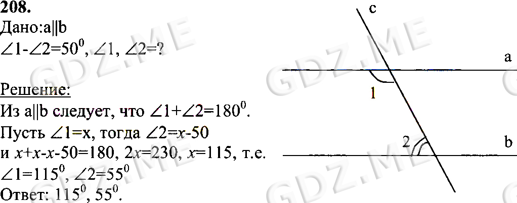 Подробный вариант решения из решебника (ГДЗ): Номер номер 208 (НОМЕРА РЕШЕНИЙ) по предмету Геометрия, за 7 класс, авторы учебника Л.С. Атанасян, В. Ф. Бутузов, С. Б. Кадомцев.