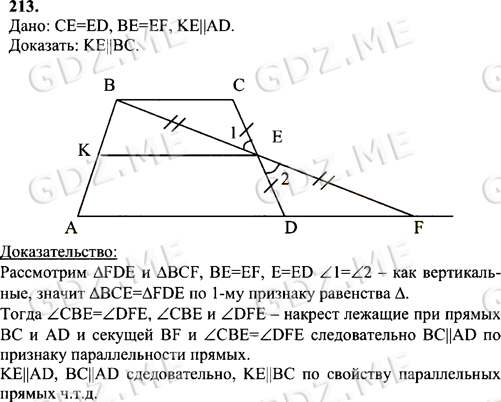 Подробный вариант решения из решебника (ГДЗ): Номер номер 213 (НОМЕРА РЕШЕНИЙ) по предмету Геометрия, за 7 класс, авторы учебника Л.С. Атанасян, В. Ф. Бутузов, С. Б. Кадомцев.