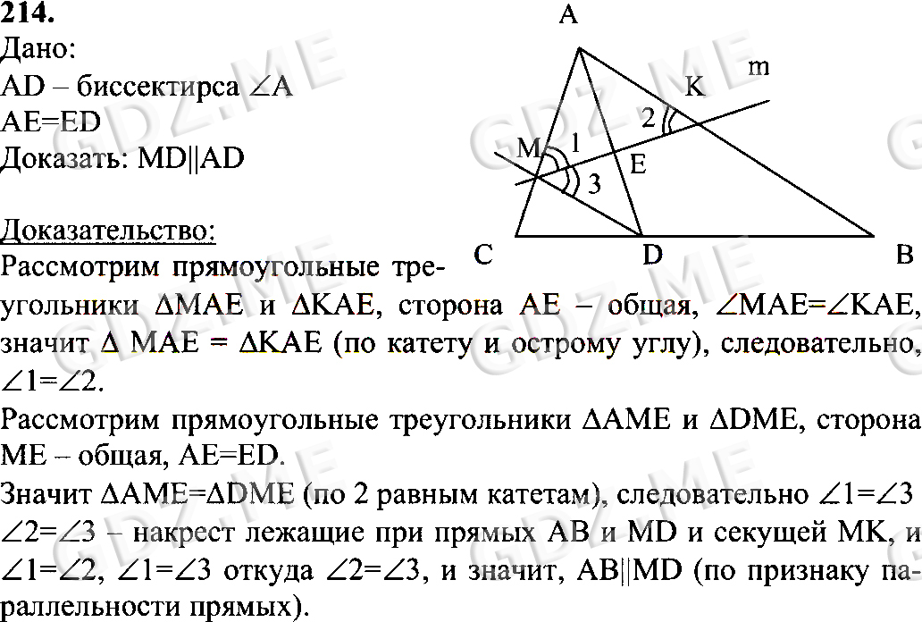 Подробный вариант решения из решебника (ГДЗ): Номер номер 214 (НОМЕРА РЕШЕНИЙ) по предмету Геометрия, за 7 класс, авторы учебника Л.С. Атанасян, В. Ф. Бутузов, С. Б. Кадомцев.