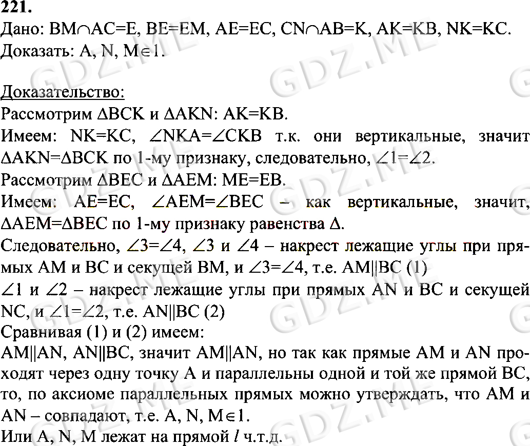 Подробный вариант решения из решебника (ГДЗ): Номер номер 221 (НОМЕРА РЕШЕНИЙ) по предмету Геометрия, за 7 класс, авторы учебника Л.С. Атанасян, В. Ф. Бутузов, С. Б. Кадомцев.