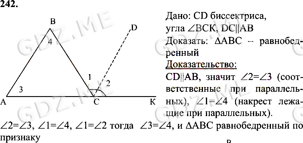 Подробный вариант решения из решебника (ГДЗ): Номер номер 242 (НОМЕРА РЕШЕНИЙ) по предмету Геометрия, за 7 класс, авторы учебника Л.С. Атанасян, В. Ф. Бутузов, С. Б. Кадомцев.