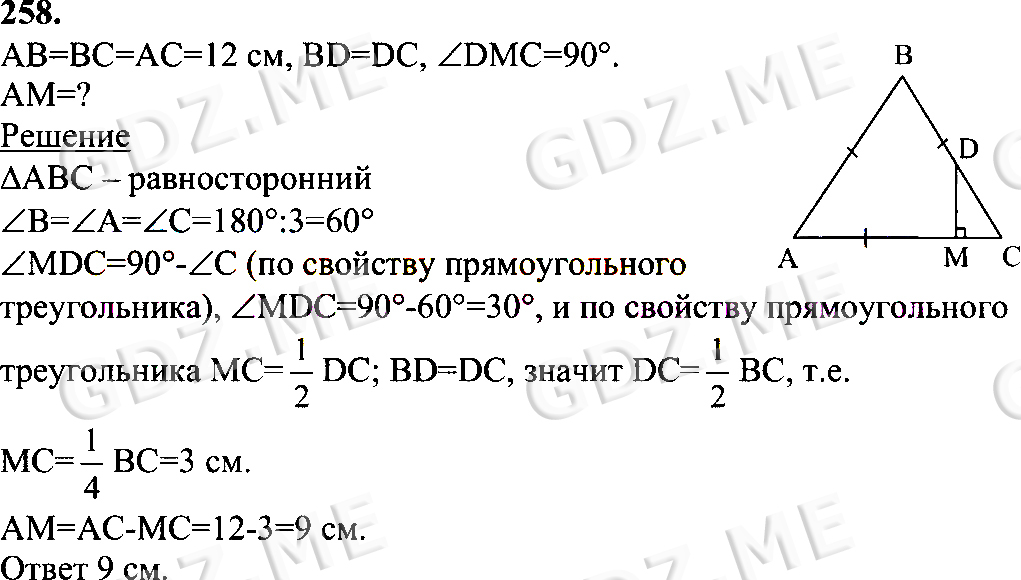 Подробный вариант решения из решебника (ГДЗ): Номер номер 258 (НОМЕРА РЕШЕНИЙ) по предмету Геометрия, за 7 класс, авторы учебника Л.С. Атанасян, В. Ф. Бутузов, С. Б. Кадомцев.