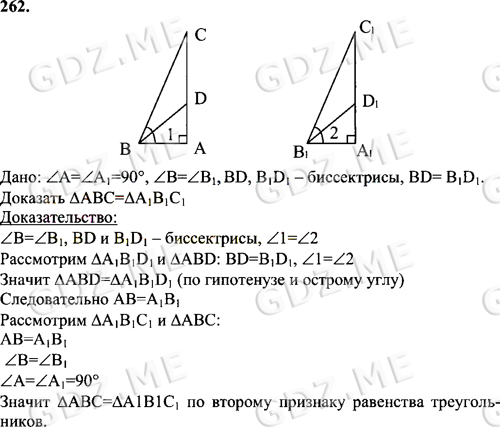 Подробный вариант решения из решебника (ГДЗ): Номер номер 262 (НОМЕРА РЕШЕНИЙ) по предмету Геометрия, за 7 класс, авторы учебника Л.С. Атанасян, В. Ф. Бутузов, С. Б. Кадомцев.