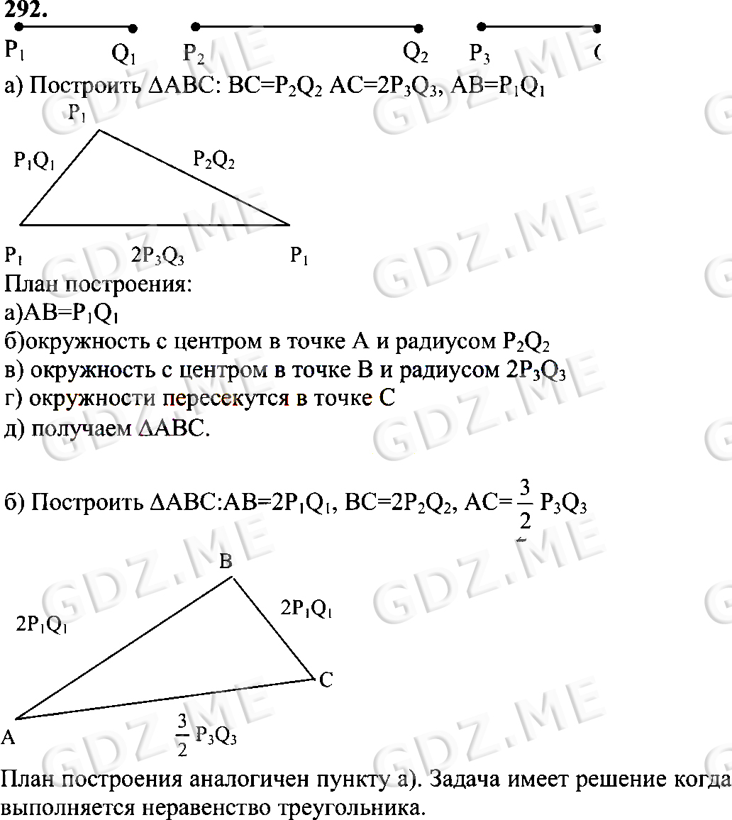 Подробный вариант решения из решебника (ГДЗ): Номер номер 292 (НОМЕРА РЕШЕНИЙ) по предмету Геометрия, за 7 класс, авторы учебника Л.С. Атанасян, В. Ф. Бутузов, С. Б. Кадомцев.
