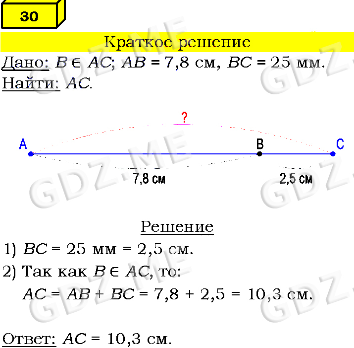Подробный вариант решения из решебника (ГДЗ): Номер номер 30 (НОМЕРА РЕШЕНИЙ) по предмету Геометрия, за 7 класс, авторы учебника Л.С. Атанасян, В. Ф. Бутузов, С. Б. Кадомцев.