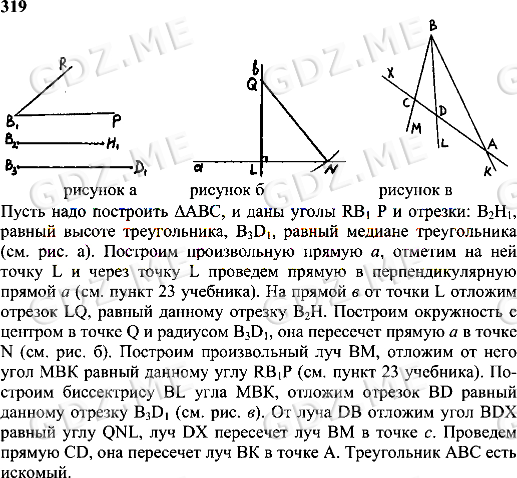 Подробный вариант решения из решебника (ГДЗ): Номер номер 319 (НОМЕРА РЕШЕНИЙ) по предмету Геометрия, за 7 класс, авторы учебника Л.С. Атанасян, В. Ф. Бутузов, С. Б. Кадомцев.