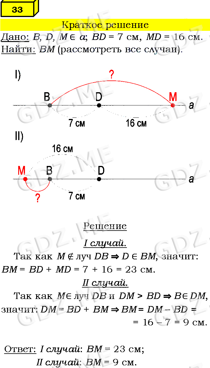 Подробный вариант решения из решебника (ГДЗ): Номер номер 33 (НОМЕРА РЕШЕНИЙ) по предмету Геометрия, за 7 класс, авторы учебника Л.С. Атанасян, В. Ф. Бутузов, С. Б. Кадомцев.