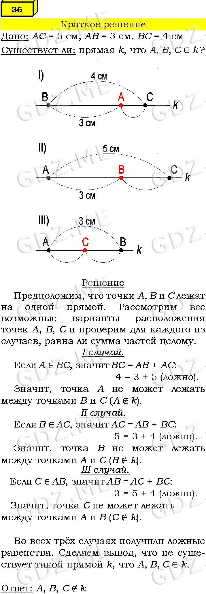 Подробный вариант решения из решебника (ГДЗ): Номер номер 36 (НОМЕРА РЕШЕНИЙ) по предмету Геометрия, за 7 класс, авторы учебника Л.С. Атанасян, В. Ф. Бутузов, С. Б. Кадомцев.