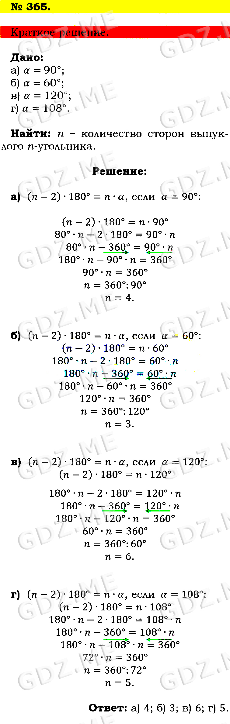 Подробный вариант решения из решебника (ГДЗ): Номер номер 365 (НОМЕРА РЕШЕНИЙ) по предмету Геометрия, за 7 класс, авторы учебника Л.С. Атанасян, В. Ф. Бутузов, С. Б. Кадомцев.