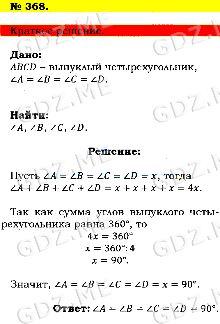 Подробный вариант решения из решебника (ГДЗ): Номер номер 368 (НОМЕРА РЕШЕНИЙ) по предмету Геометрия, за 7 класс, авторы учебника Л.С. Атанасян, В. Ф. Бутузов, С. Б. Кадомцев.