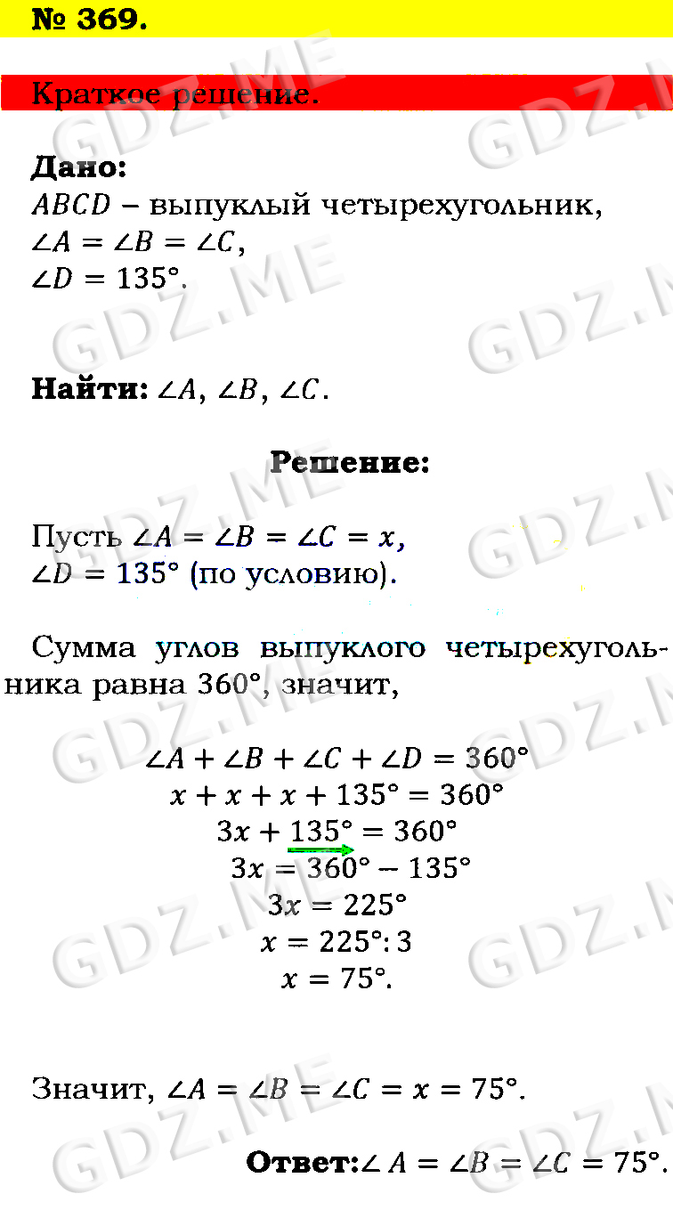Подробный вариант решения из решебника (ГДЗ): Номер номер 369 (НОМЕРА РЕШЕНИЙ) по предмету Геометрия, за 7 класс, авторы учебника Л.С. Атанасян, В. Ф. Бутузов, С. Б. Кадомцев.