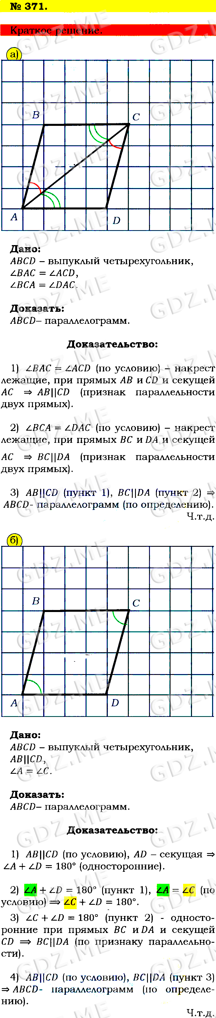 Подробный вариант решения из решебника (ГДЗ): Номер номер 371 (НОМЕРА РЕШЕНИЙ) по предмету Геометрия, за 7 класс, авторы учебника Л.С. Атанасян, В. Ф. Бутузов, С. Б. Кадомцев.