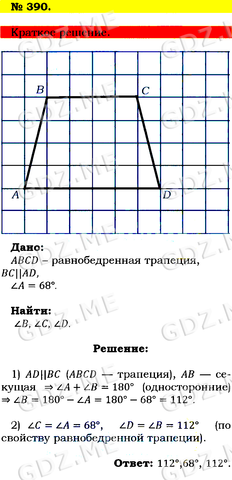 Подробный вариант решения из решебника (ГДЗ): Номер номер 390 (НОМЕРА РЕШЕНИЙ) по предмету Геометрия, за 7 класс, авторы учебника Л.С. Атанасян, В. Ф. Бутузов, С. Б. Кадомцев.