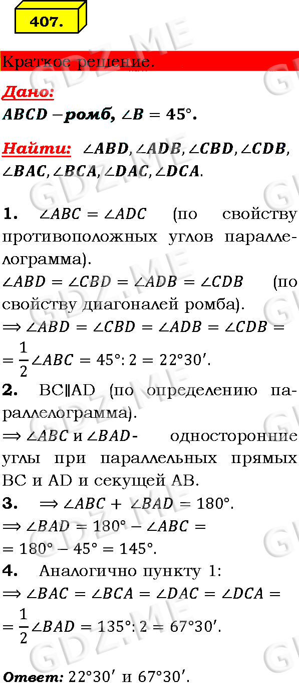 Подробный вариант решения из решебника (ГДЗ): Номер номер 407 (НОМЕРА РЕШЕНИЙ) по предмету Геометрия, за 7 класс, авторы учебника Л.С. Атанасян, В. Ф. Бутузов, С. Б. Кадомцев.