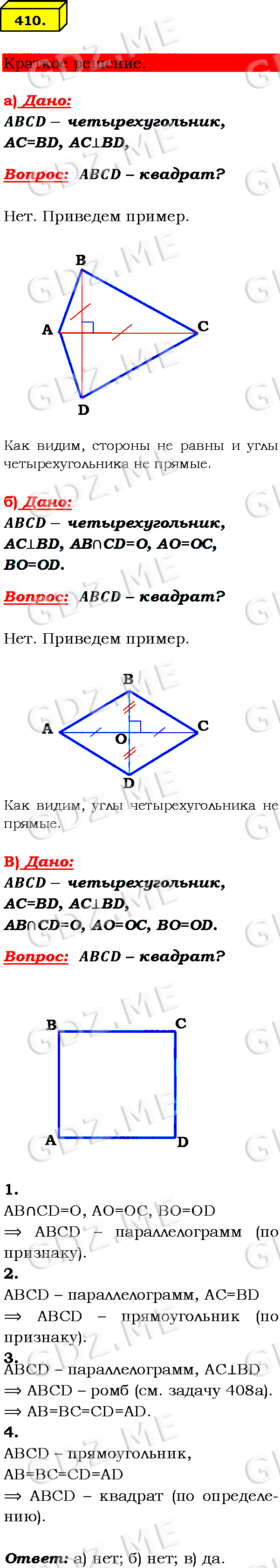 ГДЗ по Геометрии 7-9 класс: Атанасян Л.С. 2013 год.. Ответ на Номер номер 410 (НОМЕРА РЕШЕНИЙ)