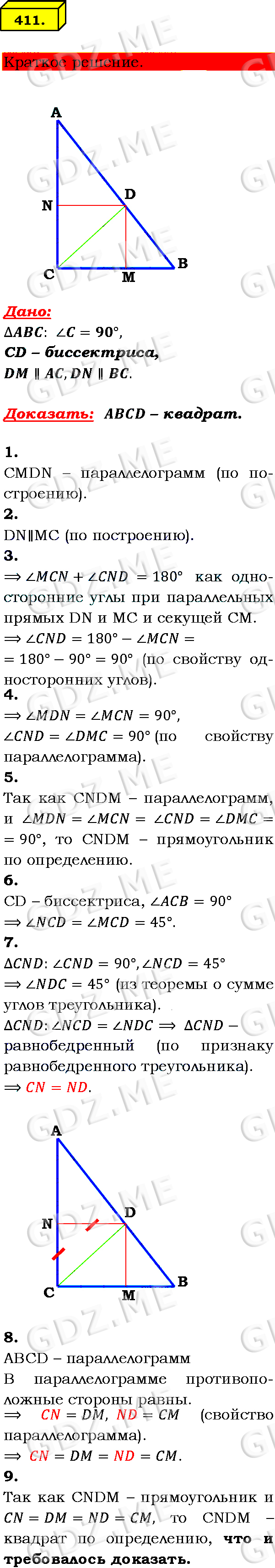 ГДЗ по Геометрии 7-9 класс: Атанасян Л.С. 2013 год.. Ответ на Номер номер 411 (НОМЕРА РЕШЕНИЙ)