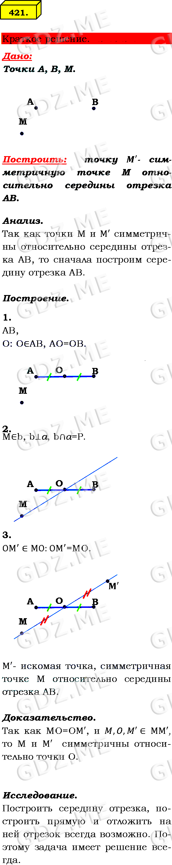 Подробный вариант решения из решебника (ГДЗ): Номер номер 421 (НОМЕРА РЕШЕНИЙ) по предмету Геометрия, за 7 класс, авторы учебника Л.С. Атанасян, В. Ф. Бутузов, С. Б. Кадомцев.