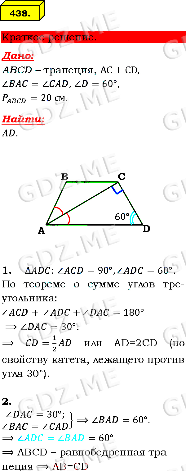 ГДЗ по Геометрии 7-9 класс: Атанасян Л.С. 2013 год.. Ответ на Номер номер 438 (НОМЕРА РЕШЕНИЙ)