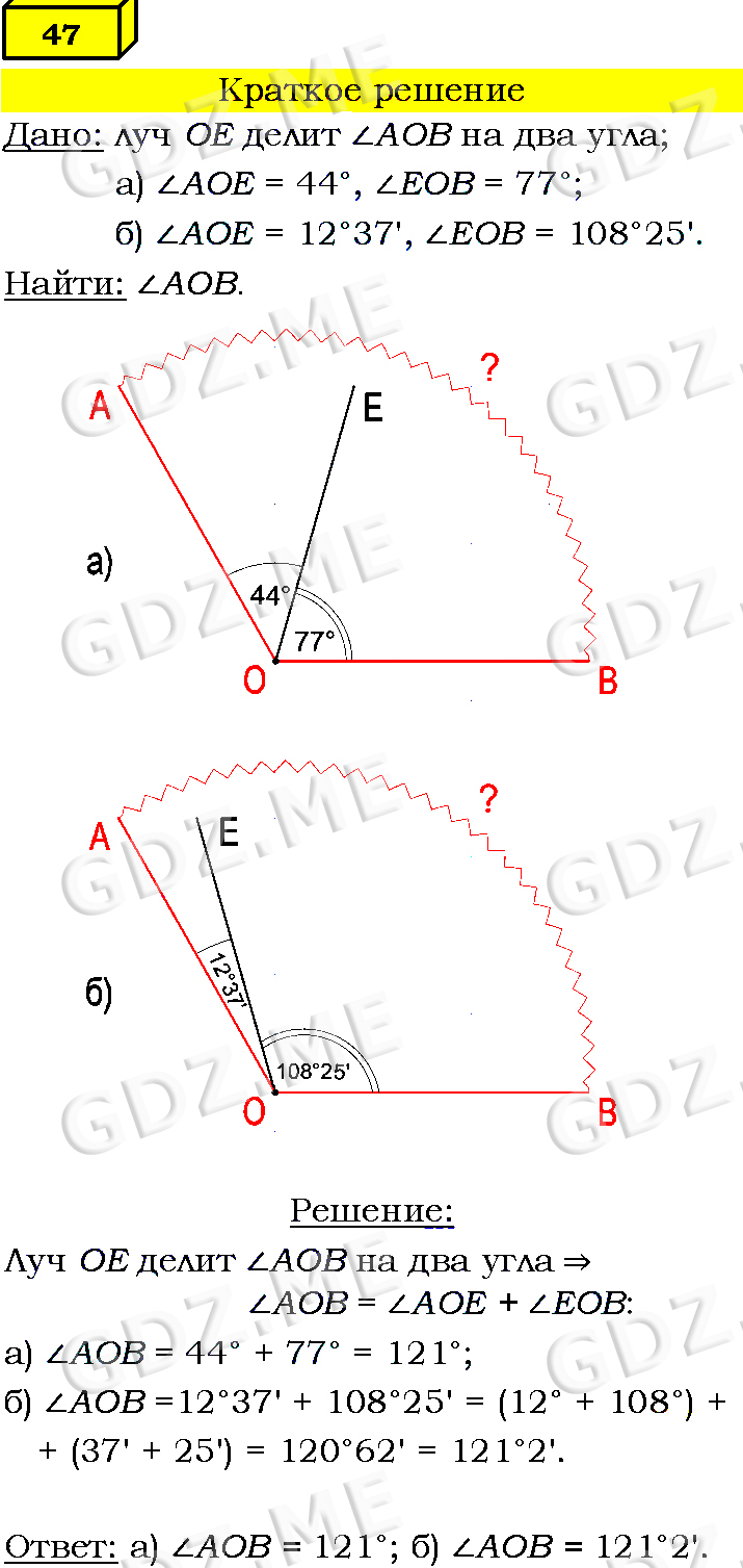 Подробный вариант решения из решебника (ГДЗ): Номер номер 47 (НОМЕРА РЕШЕНИЙ) по предмету Геометрия, за 7 класс, авторы учебника Л.С. Атанасян, В. Ф. Бутузов, С. Б. Кадомцев.