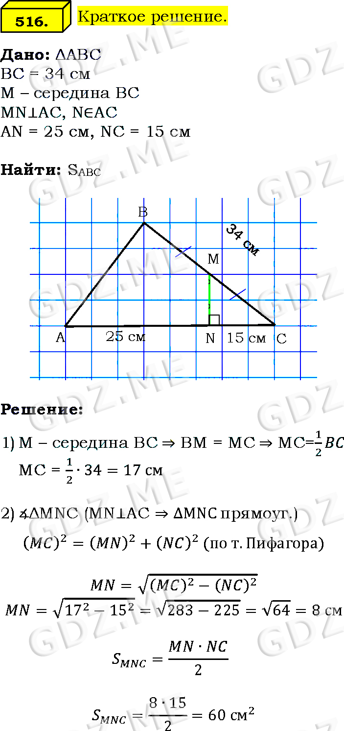 Подробный вариант решения из решебника (ГДЗ): Номер номер 516 (НОМЕРА РЕШЕНИЙ) по предмету Геометрия, за 7 класс, авторы учебника Л.С. Атанасян, В. Ф. Бутузов, С. Б. Кадомцев.