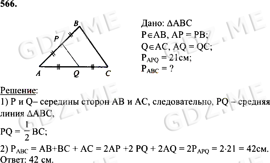 Подробный вариант решения из решебника (ГДЗ): Номер номер 566 (НОМЕРА РЕШЕНИЙ) по предмету Геометрия, за 7 класс, авторы учебника Л.С. Атанасян, В. Ф. Бутузов, С. Б. Кадомцев.