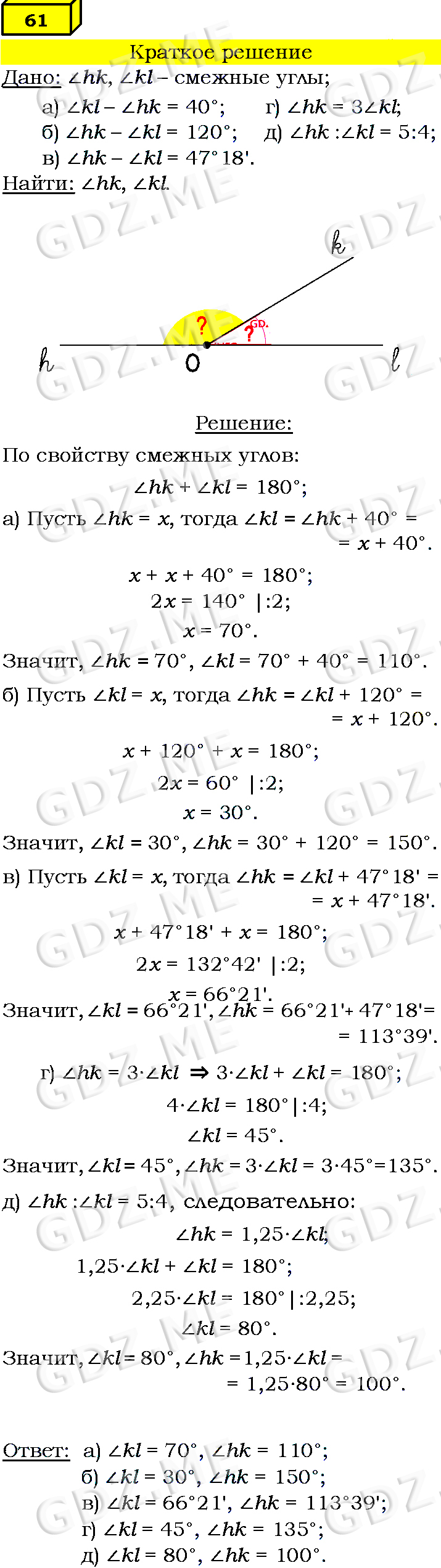 Подробный вариант решения из решебника (ГДЗ): Номер номер 61 (НОМЕРА РЕШЕНИЙ) по предмету Геометрия, за 7 класс, авторы учебника Л.С. Атанасян, В. Ф. Бутузов, С. Б. Кадомцев.