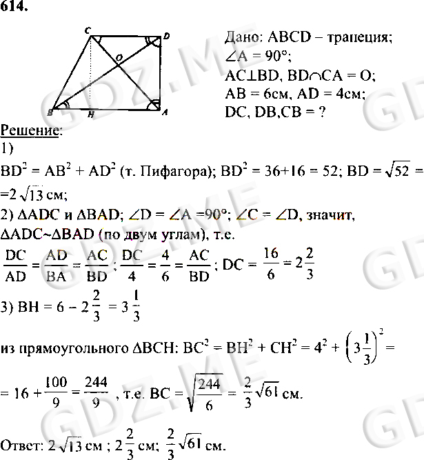 ГДЗ по Геометрии 7-9 класс: Атанасян Л.С. 2013 год.. Ответ на Номер номер 614 (НОМЕРА РЕШЕНИЙ)
