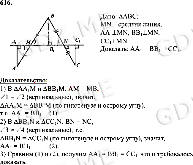Подробный вариант решения из решебника (ГДЗ): Номер номер 616 (НОМЕРА РЕШЕНИЙ) по предмету Геометрия, за 7 класс, авторы учебника Л.С. Атанасян, В. Ф. Бутузов, С. Б. Кадомцев.