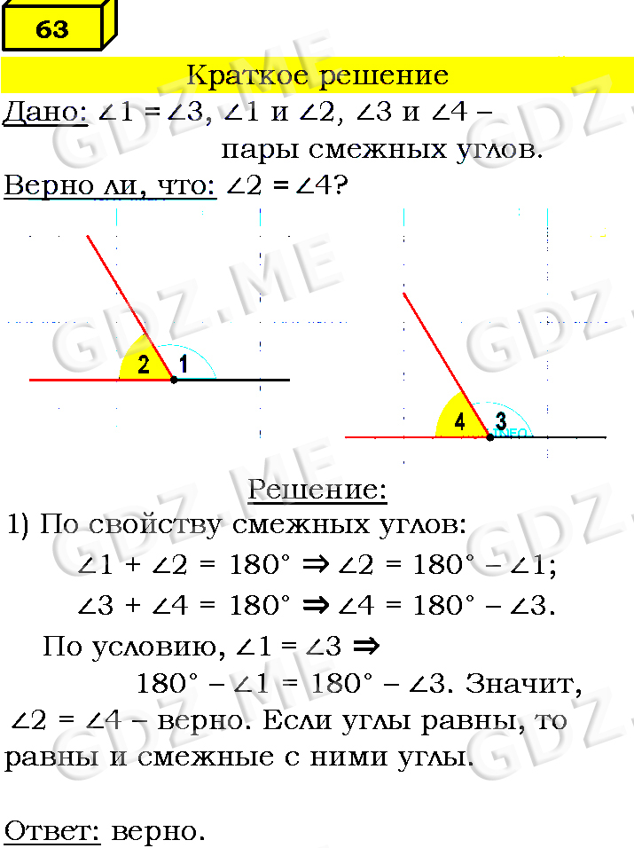 Подробный вариант решения из решебника (ГДЗ): Номер номер 63 (НОМЕРА РЕШЕНИЙ) по предмету Геометрия, за 7 класс, авторы учебника Л.С. Атанасян, В. Ф. Бутузов, С. Б. Кадомцев.