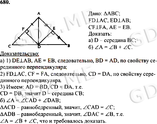 Подробный вариант решения из решебника (ГДЗ): Номер номер 680 (НОМЕРА РЕШЕНИЙ) по предмету Геометрия, за 7 класс, авторы учебника Л.С. Атанасян, В. Ф. Бутузов, С. Б. Кадомцев.
