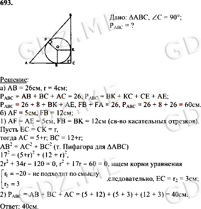 Подробный вариант решения из решебника (ГДЗ): Номер номер 693 (НОМЕРА РЕШЕНИЙ) по предмету Геометрия, за 7 класс, авторы учебника Л.С. Атанасян, В. Ф. Бутузов, С. Б. Кадомцев.