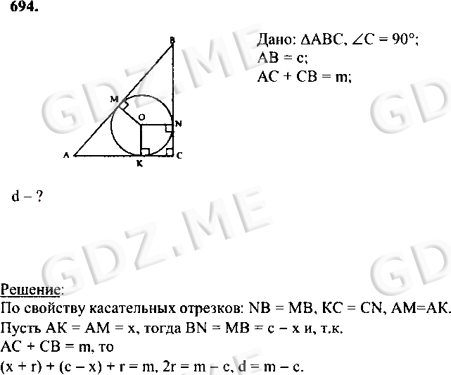 ГДЗ по Геометрии 7-9 класс: Атанасян Л.С. 2013 год.. Ответ на Номер номер 694 (НОМЕРА РЕШЕНИЙ)
