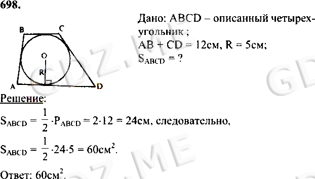 ГДЗ по Геометрии 7-9 класс: Атанасян Л.С. 2013 год.. Ответ на Номер номер 698 (НОМЕРА РЕШЕНИЙ)
