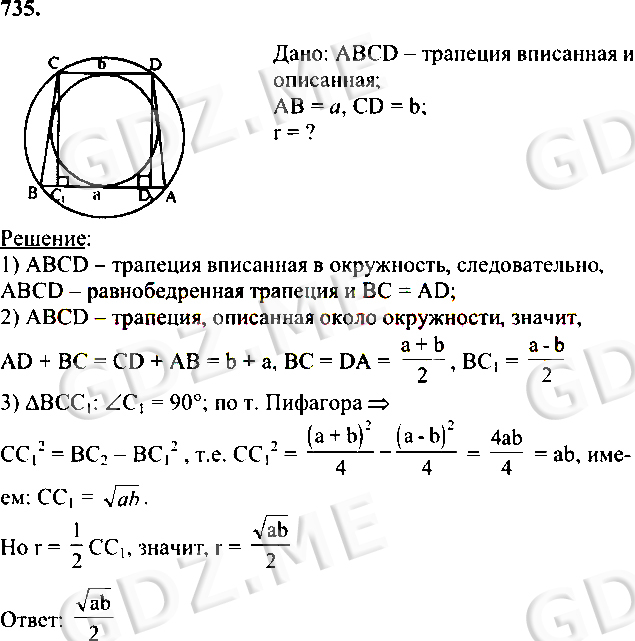 ГДЗ по Геометрии 7-9 класс: Атанасян Л.С. 2013 год.. Ответ на Номер номер 735 (НОМЕРА РЕШЕНИЙ)