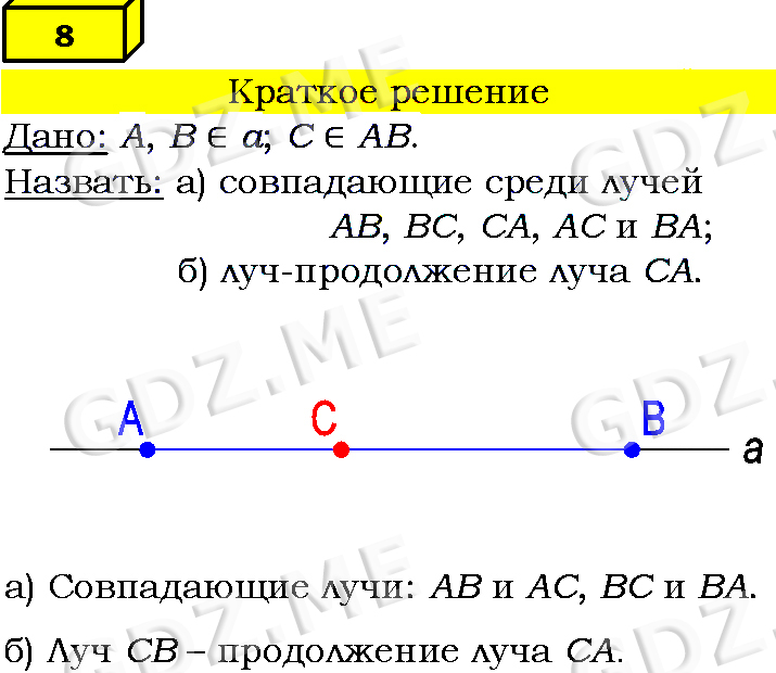 Подробный вариант решения из решебника (ГДЗ): Номер номер 8 (НОМЕРА РЕШЕНИЙ) по предмету Геометрия, за 7 класс, авторы учебника Л.С. Атанасян, В. Ф. Бутузов, С. Б. Кадомцев.