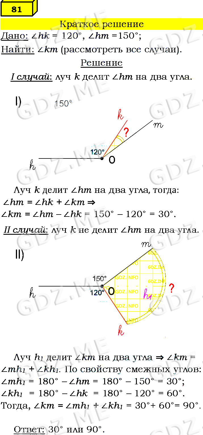 Подробный вариант решения из решебника (ГДЗ): Номер номер 81 (НОМЕРА РЕШЕНИЙ) по предмету Геометрия, за 7 класс, авторы учебника Л.С. Атанасян, В. Ф. Бутузов, С. Б. Кадомцев.
