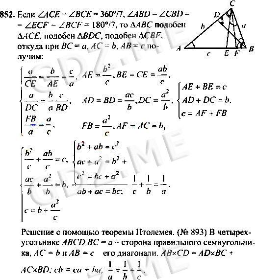 Подробный вариант решения из решебника (ГДЗ): Номер номер 852 (НОМЕРА РЕШЕНИЙ) по предмету Геометрия, за 7 класс, авторы учебника Л.С. Атанасян, В. Ф. Бутузов, С. Б. Кадомцев.