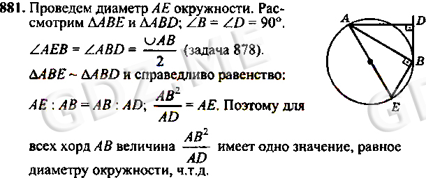 ГДЗ по Геометрии 7-9 класс: Атанасян Л.С. 2013 год.. Ответ на Номер номер 881 (НОМЕРА РЕШЕНИЙ)